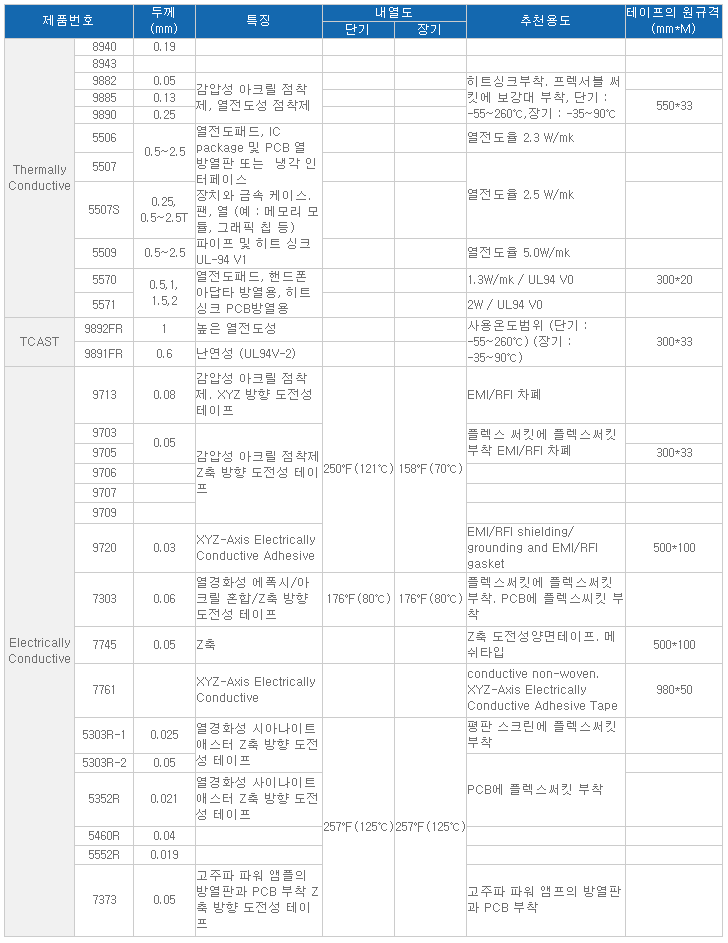 전기적 용도의 필요로 인해 3M에서는 높은 작업성과 성능을 가진 열전도성 테이프와 전기 전도성 테이프를 공급합니다.