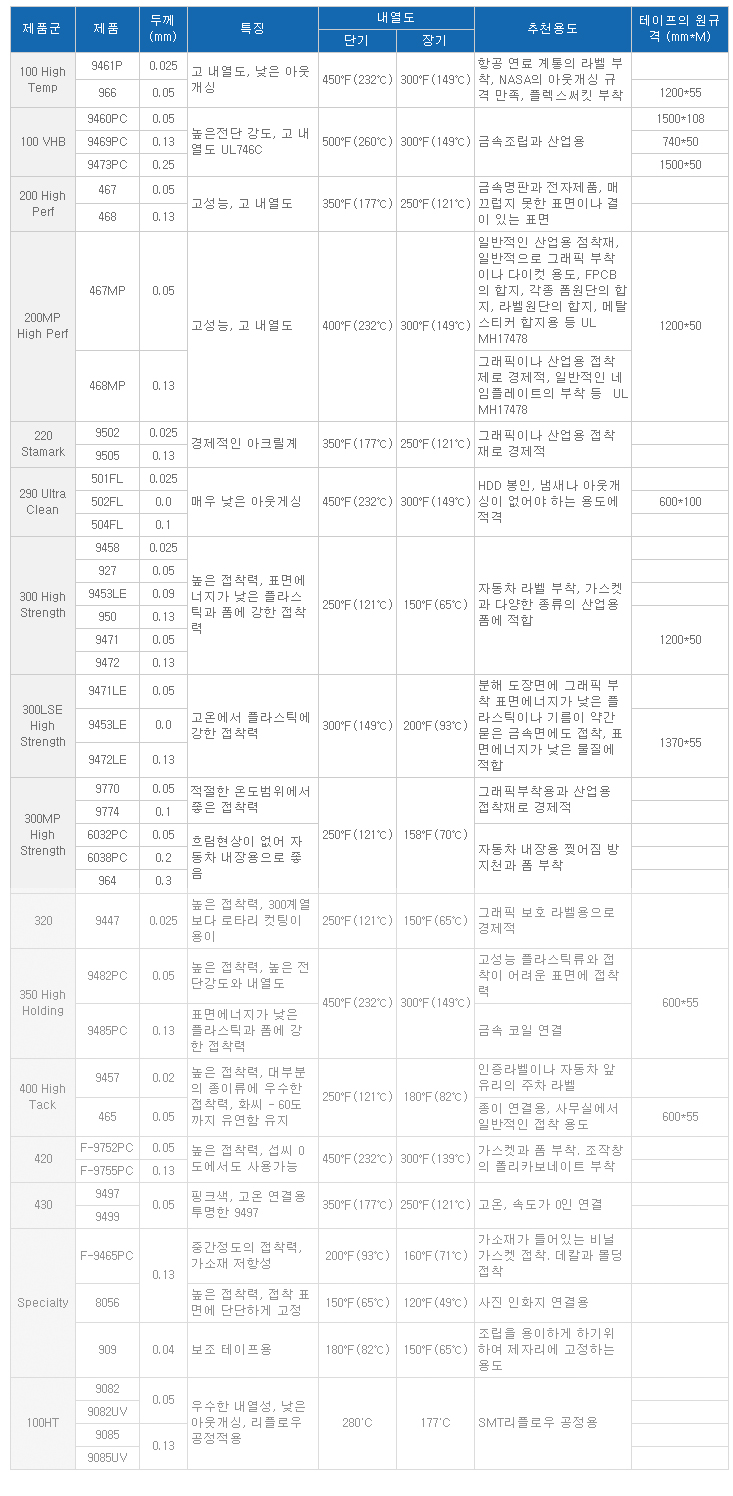 극도의 작동 고온을 견뎌야하는 가전제품의 외측 명판을 붙이는 용도등에 적합합니다.