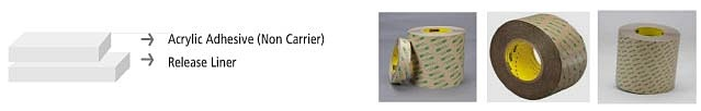 특수 이형지에 점착제 처리가 되어있는 3M™ 전사테이프는 롤형태로 공급되며 테이프 사용시 양면 접착제 면이 접착면 쪽을 향하게 하여