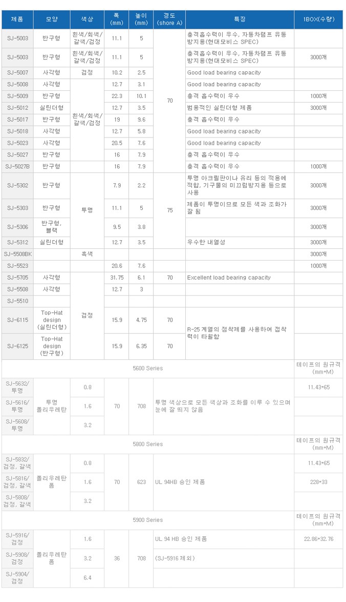 3M Bumpon은 다양한 종류의 형태, 크기를 가지고 있는 충격 방지 제품으로, 고밀도 폴리우레탄으로 구성되어 있으며