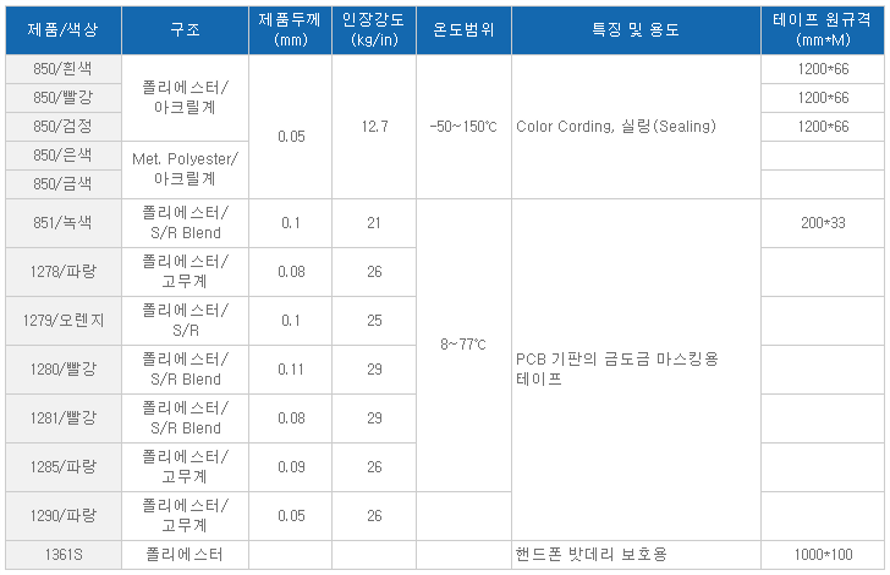 최소두께가 1mil(0.025mm)에 불과해 Butt Splicing과 같이 얇은 두께의 테이프를 필요로 하는 경우 편리합니다.